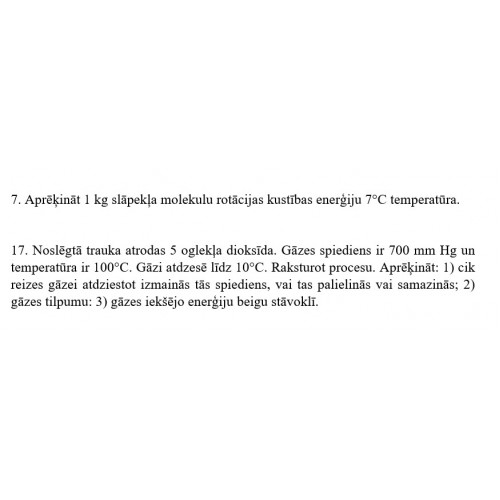 7. Aprēķināt 1 kg slāpekļa molekulu rotācijas kustības enerģiju 7°C temperatūra.