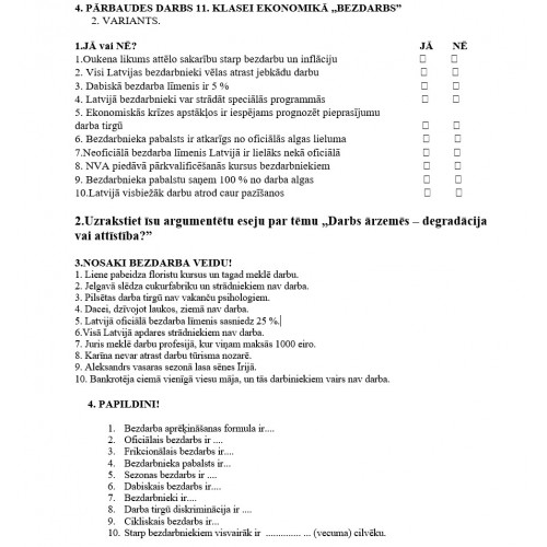 4. PĀRBAUDES DARBS 11. KLASEI EKONOMIKĀ ,,BEZDARBS” 2. VARIANTS. 1.JĀ vai NĒ?..